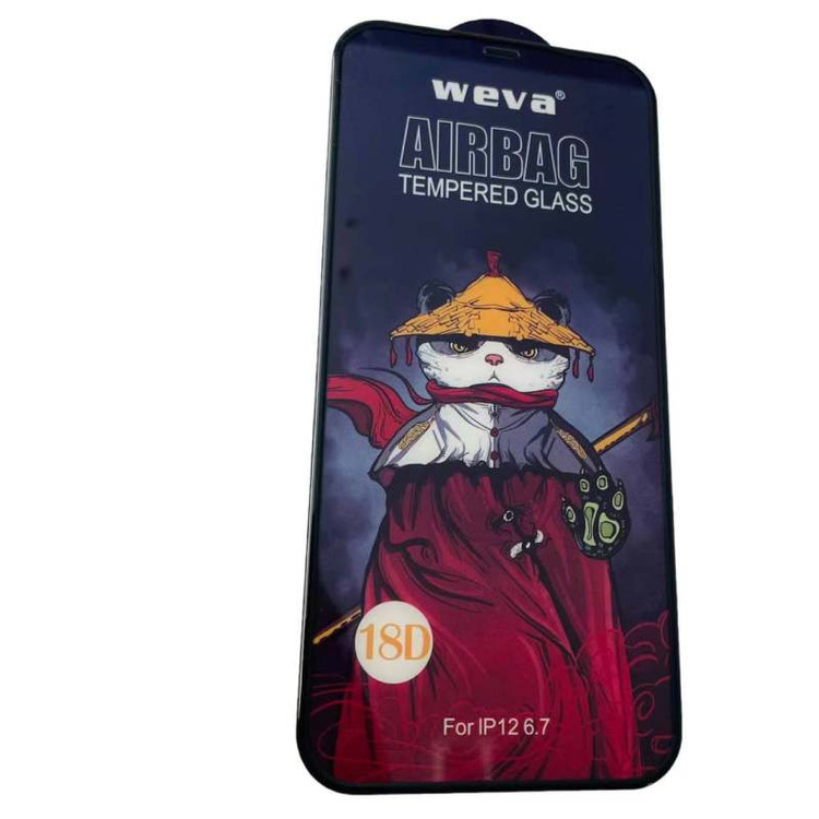 محافظ صفحه نمایش شیشه ای ایربگ دار یکی از مرغوب ترین گلس های Weva می باشد، دورتادور این محافظ صفحه نمایش را لبه های مشکی رنگ برآمده ای فرا گرفته است، این لبه ها در هنگام سقوط گوشی روی صفحه نمایش همانند ایربگ عمل کرده و درصد بسیار بالایی را در نشکستن صفحه نمایش گوشی به وجود می آورند. شیشه این محافظ با سختی 9H ساخته شده است که از سخت ترین شیشه های موجود است ، این گلس ضد خش است و در برابر شکستگی مقاومت بالایی دارد. شیشه این محافظ شفاف بود و بیش از 99 درصد نور صفحه نمایش گوشی شما را انتقال می دهد همچنین ضد اثر انگشت است و به هیچ عنوان لمس گوشی شما را کاهش نمی دهد.محافظ صفحه نمایش شیشه ای ایربگ دار وِوا 18D تمام چسب بوده و لبه های آن دارای بیشترین خمیدگی جهت چسبندگی بیشتر و جلوگیری از بلند شدن از روی نمایشگر گوشی می باشند. نصب آن بسیار راحت است و در صورت تمیز بودن سطح صفحه نمایش، بدون ایجاد هیچ حبابی به آن می چسبد.این محافظ شیشه ای در برابر قطرات آب مقاوم یا به معنای دیگر آب گریز است و در صورت پاشش قطرات آب روی آن، قابلیت آب گریزی دارد.در قسمت بالای این گلس که بر روی ناچ گوشی قرار می گیرد محل قرارگیری اسپیکر گوشی به وسیله قطعه توری مانند فلزی پوشانده شده است که هم مانع ورود گرد و غبار بیشتر به گوشی می شود و هم زیبایی بیشتری به صفحه نمایش گوشی شما می دهد.