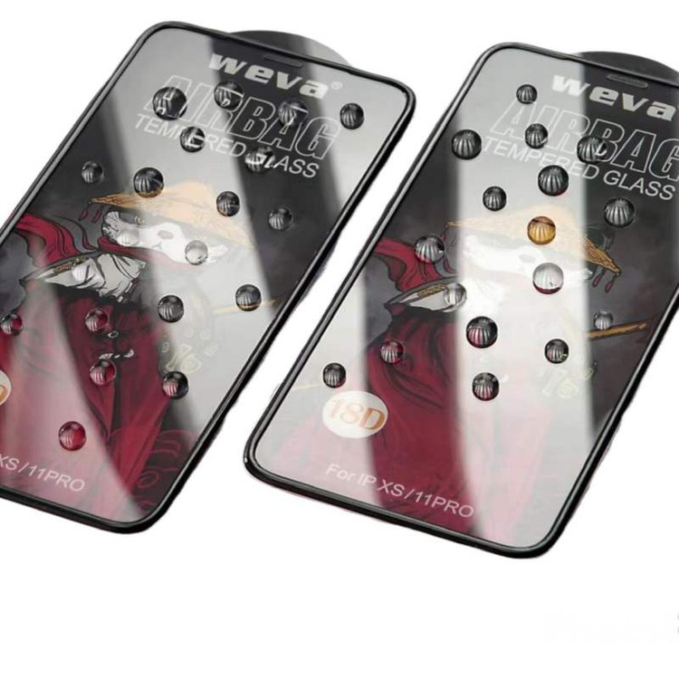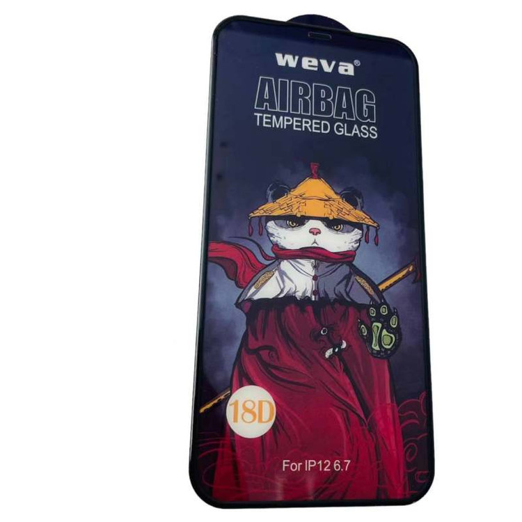 محافظ صفحه نمایش شیشه ای ایربگ دار یکی از مرغوب ترین گلس های Weva می باشد، دورتادور این محافظ صفحه نمایش را لبه های مشکی رنگ برآمده ای فرا گرفته است، این لبه ها در هنگام سقوط گوشی روی صفحه نمایش همانند ایربگ عمل کرده و درصد بسیار بالایی را در نشکستن صفحه نمایش گوشی به وجود می آورند. شیشه این محافظ با سختی 9H ساخته شده است که از سخت ترین شیشه های موجود است ، این گلس ضد خش است و در برابر شکستگی مقاومت بالایی دارد. شیشه این محافظ شفاف بود و بیش از 99 درصد نور صفحه نمایش گوشی شما را انتقال می دهد همچنین ضد اثر انگشت است و به هیچ عنوان لمس گوشی شما را کاهش نمی دهد.محافظ صفحه نمایش شیشه ای ایربگ دار وِوا 18D تمام چسب بوده و لبه های آن دارای بیشترین خمیدگی جهت چسبندگی بیشتر و جلوگیری از بلند شدن از روی نمایشگر گوشی می باشند. نصب آن بسیار راحت است و در صورت تمیز بودن سطح صفحه نمایش، بدون ایجاد هیچ حبابی به آن می چسبد.این محافظ شیشه ای در برابر قطرات آب مقاوم یا به معنای دیگر آب گریز است و در صورت پاشش قطرات آب روی آن، قابلیت آب گریزی دارد.در قسمت بالای این گلس که بر روی ناچ گوشی قرار می گیرد محل قرارگیری اسپیکر گوشی به وسیله قطعه توری مانند فلزی پوشانده شده است که هم مانع ورود گرد و غبار بیشتر به گوشی می شود و هم زیبایی بیشتری به صفحه نمایش گوشی شما می دهد.